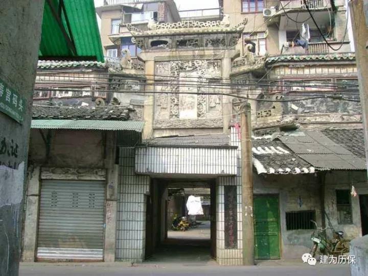 如今,历史上规模宏大的“江西会馆”已荡然无存,唯一能从中窥见“江西会馆”辉煌的,便是门口剩下的高约15米、宽3米左右的牌楼。牌楼由左右两道石雕牌坊及中间刻字石碑构成,如今从破败的牌楼上还能隐约望见绿、黄交错的琉璃瓦片及附着其间的精致石雕。