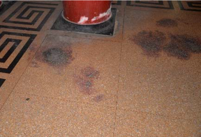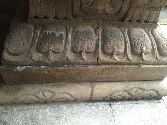 水磨石面层污染、须弥座裂损、缸砖残损