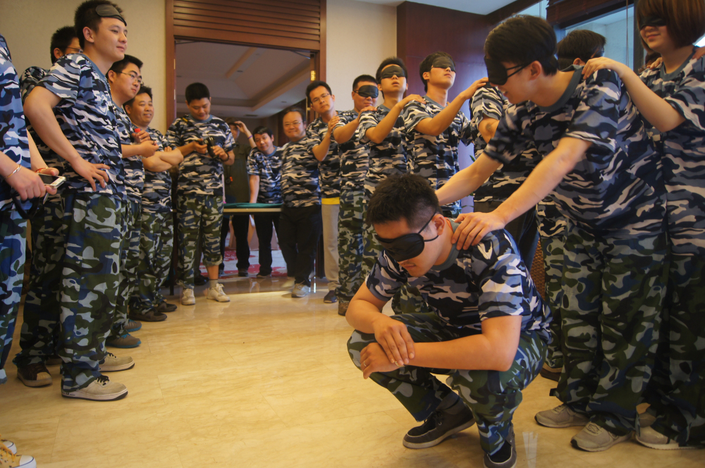 ? ? ? ?第二天上午,由于下雨的原因拓展项目在室内进行,【筹码交易】和【仙人指路】都是培养团队协作性的项目,这些活动体现了各团队在计划、沟通、执行、协作等方面的状态,也让我们体会到领导者的预见性、信息传递的时效性与准确性、员工的执行力、协作配合能力以及信息反馈在工作中的重要性。下午的【胜利大逃亡】是此次拓展训练的一个完美收官,整个团队被困于一道4.5米高的墙壁下,不能借助任何工具,不能发出一点声音、只能通过人的力量与智慧,爬过墙实现集体逃生。这个项目真正实现了团队大融合,平时交往甚少的同事此时变成生死相交的挚友。特别是在最后一个队友爬上墙时,场面惊险万分,在场所有人的心都悬着,当所有人都顺利爬上墙时,很多人都被团队所表现的空前凝聚力感动到落泪。