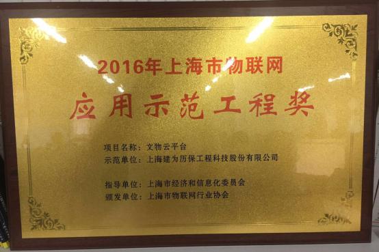 建为历?!拔奈镌破教ā被瘛?016年上海市物联网应用示范工程获奖”殊荣
