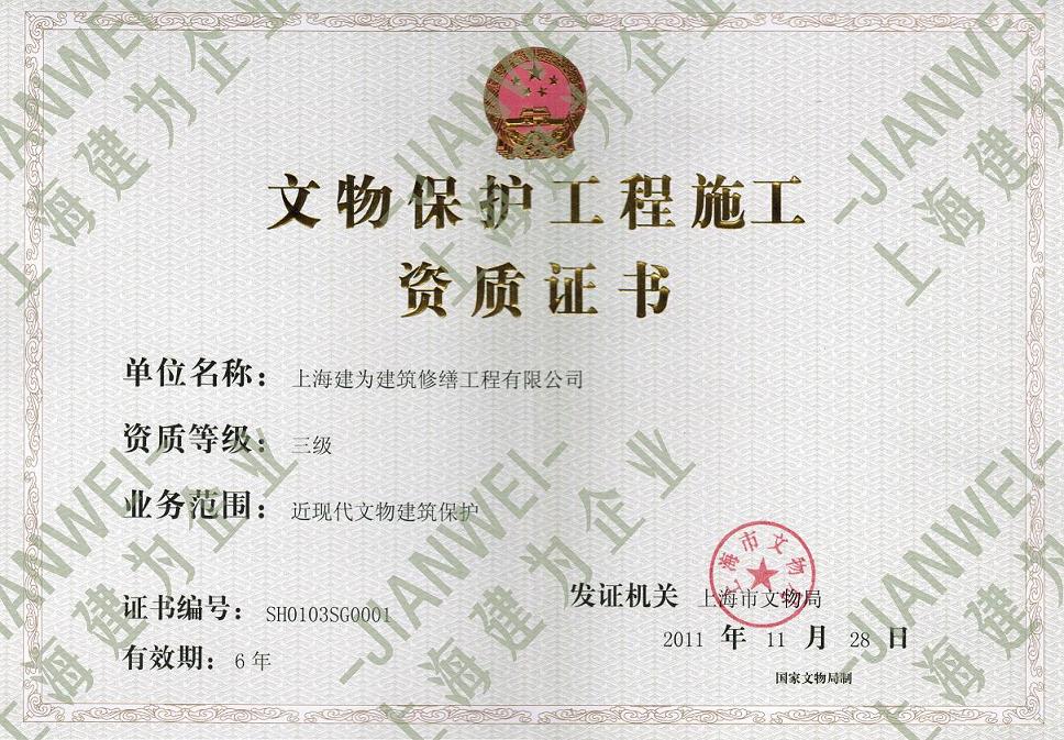 我司领取文物保护施工资质
